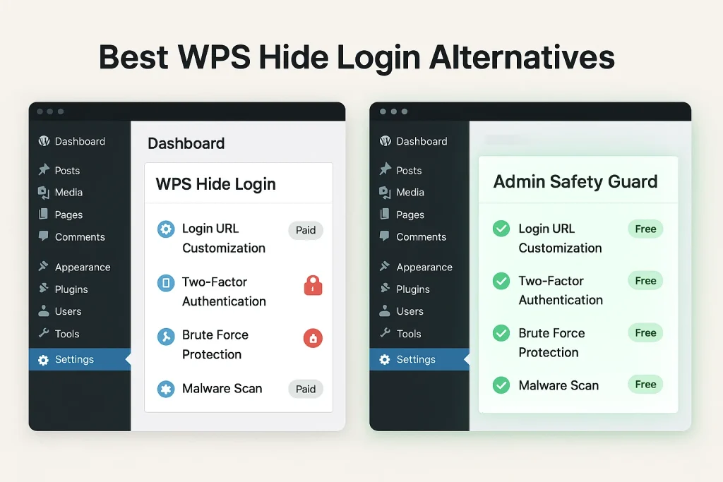 Heavy-duty tools, such as WPS Hide login alternative like Wordfence, offer strong protection but use more server power. For most users on shared or budget hosting, lighter options like AIOS or Admin Safety Guard strike a better balance.