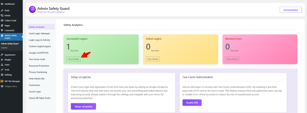 - First, go to Admin Safety Guard > Limit Login Attempts and enable the option.