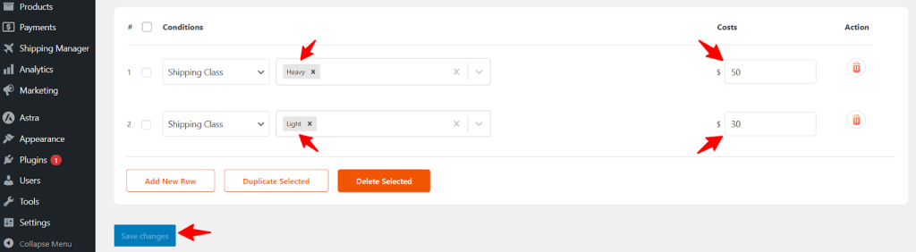 As you can see, we’ve selected two different versions of the classes from the Shipping Class. The first class is Heavy, for which the shipping fee is $50, and the second class is Light, for which the shipping fee is $30.