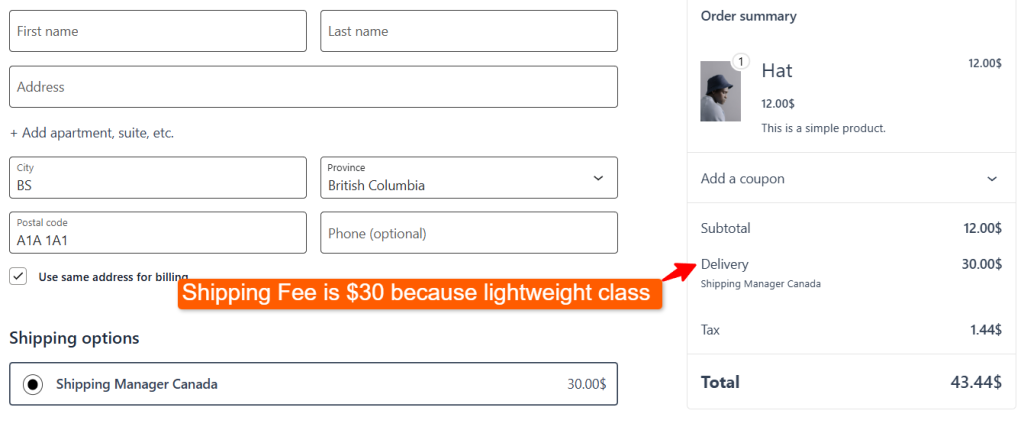 Now go to the checkout page and refresh it to see the changes in the shipping fee.