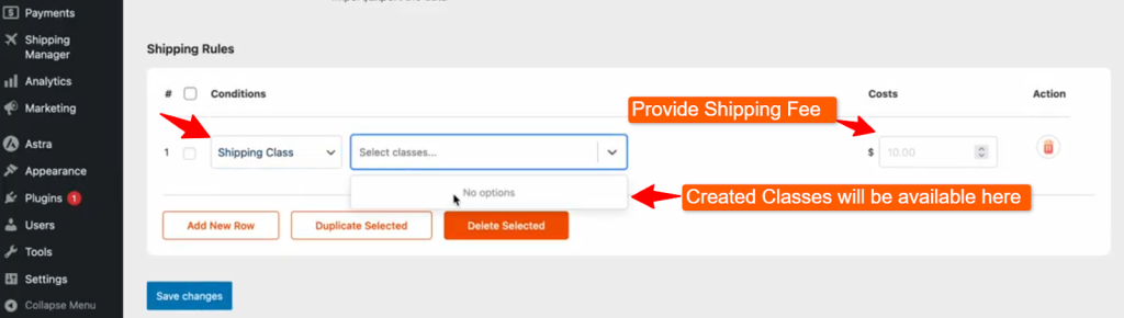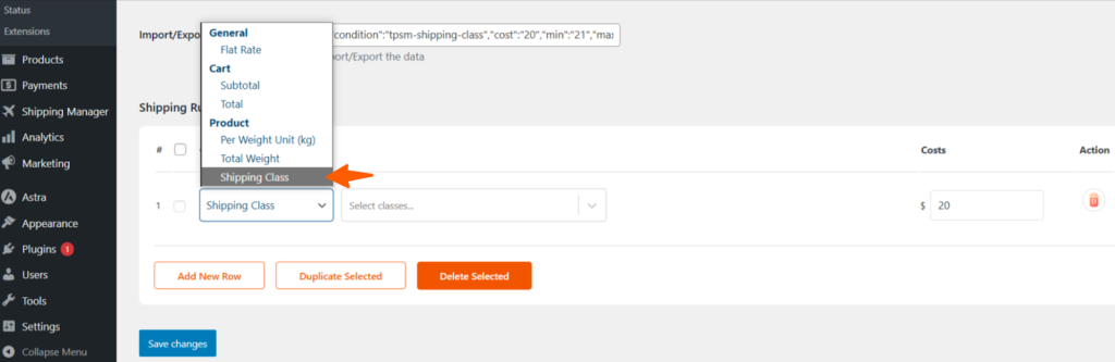 Now, you can view the shipping rules available on the list and select Shipping Class from the list.