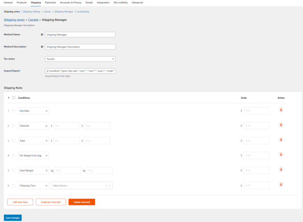 That’s all! The Shipping Manager plugin is now ready to use. Here is an overview of the Shipping Manager plugin features available under the WooCommerce > Settings > Shipping.