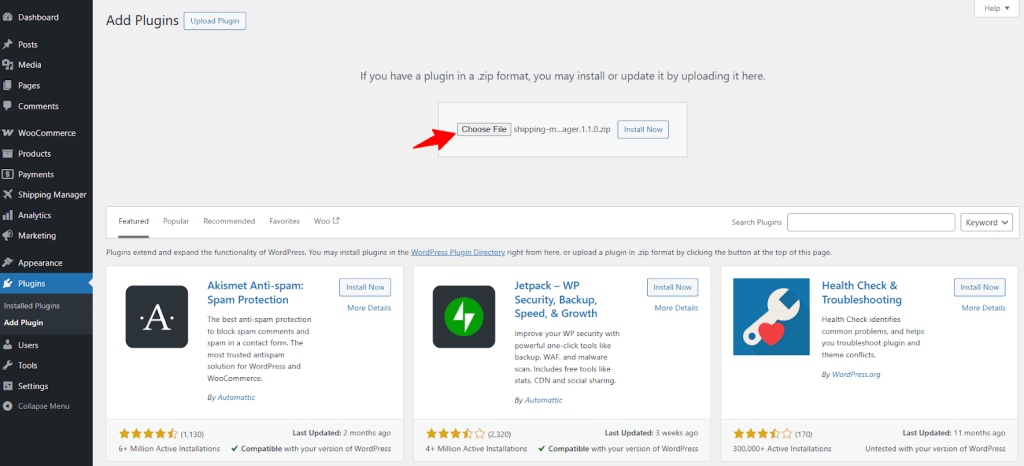First, log in to your WordPress site’s admin dashboard. Go to Plugins → Add New. Now, type Shipping Manager in the search bar.