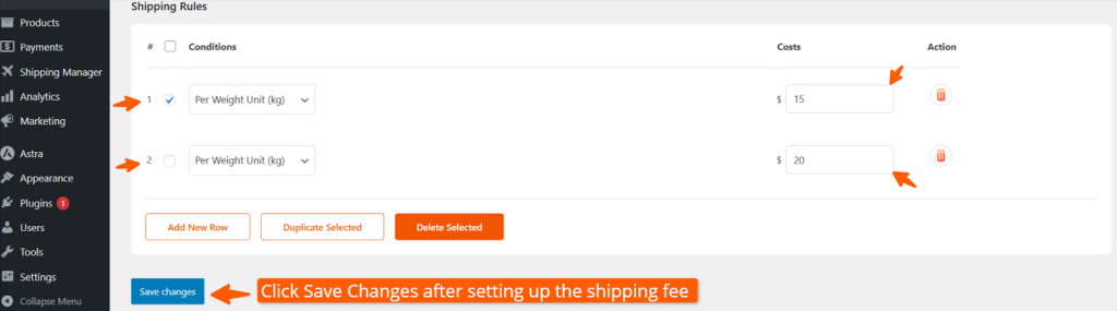 Let’s say you’ve set multiple similar shipping rules as per unit weight (kg).