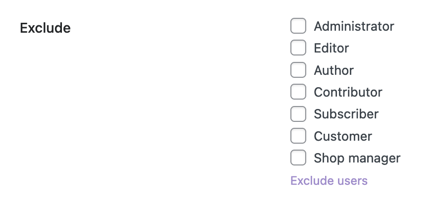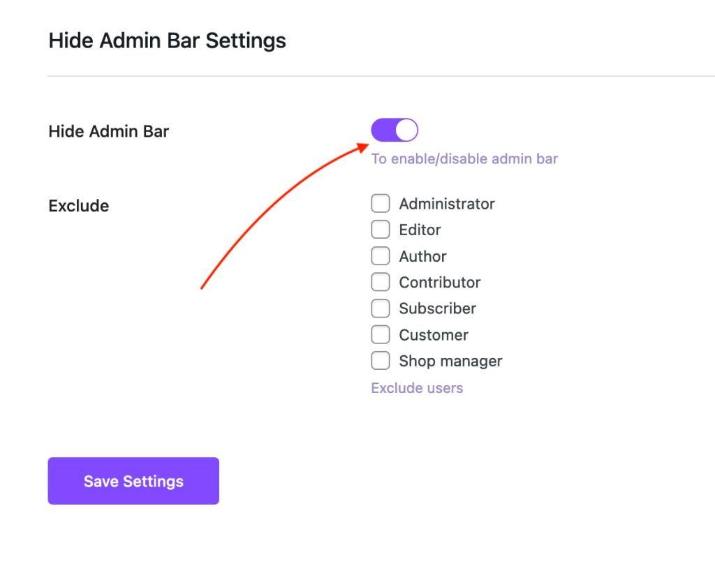 - From the available options, select which user type you want to exclude from hiding the admin bar.