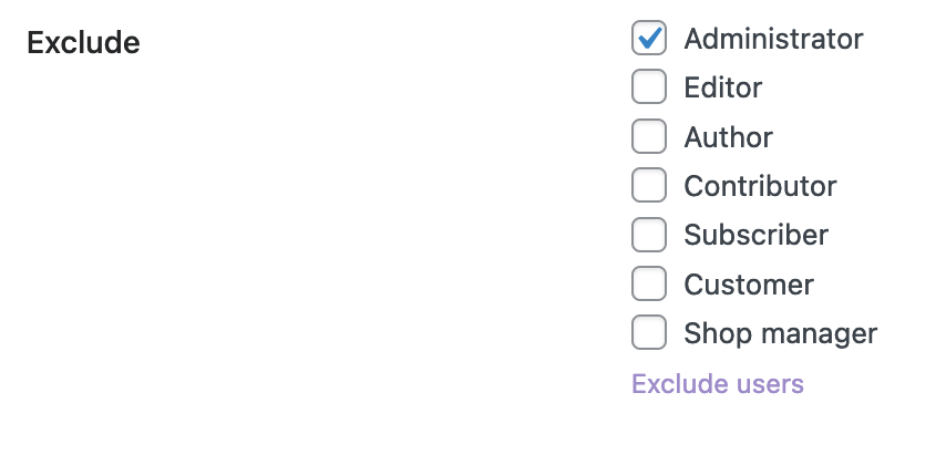 - Now, put a tick mark beside the Administrator role from the Exclude users’ list.