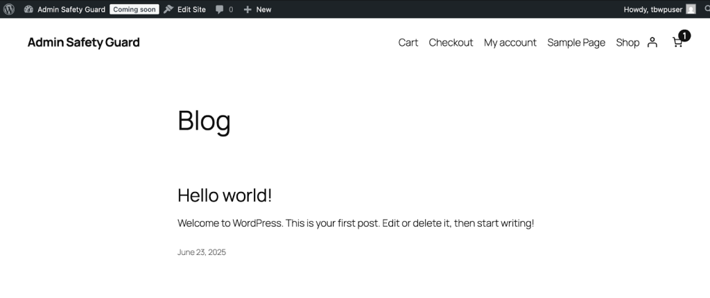 - As you can see, the Admin Bar is currently unavailable since this user role is not excluded.