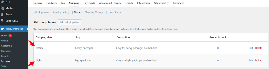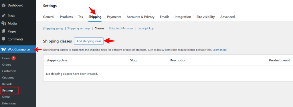 Shipping classes allow you to group products with similar shipping requirements, making it easier to set accurate shipping fees. Here’s how to create them: