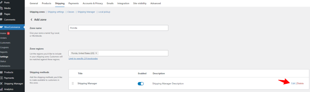 - In the Shipping Method, you can now see the Shipping Manager. View by clicking on Edit.