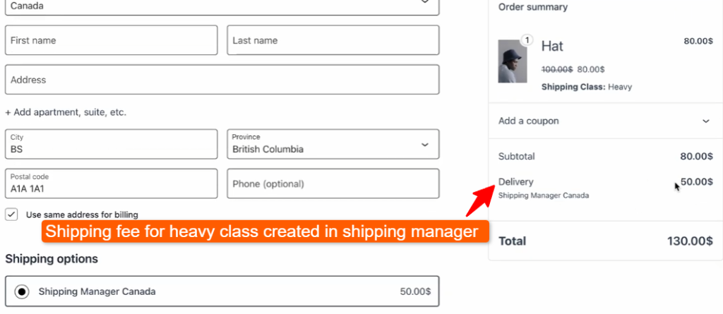 Now, we will verify that the class-based shipping fees are functioning correctly at checkout.
